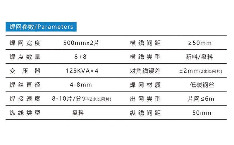 ALC是蒸压加气混凝土(Autoclaved lightweight Concrete)的简称,它是以石英砂或粉煤灰、水泥、石灰等为主原料,内配双层双向冷拔丝钢筋网片,经过高温蒸汽养护而成的多气孔混凝土成型板材;既可做墙体材料,又可做屋面板、楼层板、外墙造型,是一种性能优越、安装简便、灵活的成熟建材。双片加气板网片焊接生产线,可以高效率地自动焊接ALC所需的钢筋网片。焊点数量8+8个,焊网宽度500mm×2,焊接丝径4-8mm,每分钟约焊接10片。标准配置:纵线盘丝、调直切断、自动排料、自动送料、横线料斗、焊接主机、伺服拉网、快速出网、簸箕式落网。可选配置:正反片落网、落网小车、横线盘料、工业冷水机、空压机。球友会网页版-球友会(中国)官方,0318-7063097